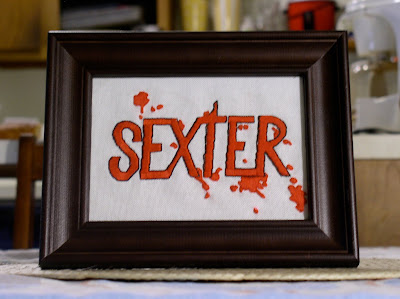 Anyway, for her gift, I embroidered and framed a little piece of Dexter (though we refer to it as Sexter because Michael C. Hall is so hot!).